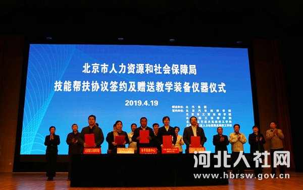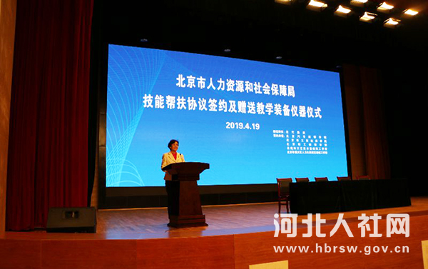 4月19日下午,北京市人社局徐仁忠副巡視員率領(lǐng)北汽集團(tuán)、北京五所技師學(xué)院到阜平縣職教中心開展技能脫貧對口幫扶活動。阜平縣政府、北京市人社局、河北省人社廳分別介紹了技能扶貧情況,北汽集團(tuán)和北京汽車技師學(xué)院、北京工貿(mào)技師學(xué)院等5所技師學(xué)院分別介紹了對接阜平職教中心技能扶貧的思路和想法。北汽集團(tuán)和北京汽車技師學(xué)院分別向阜平縣職教中心贈送教學(xué)資源和教學(xué)設(shè)備。趙愛平副廳長出席并講話。