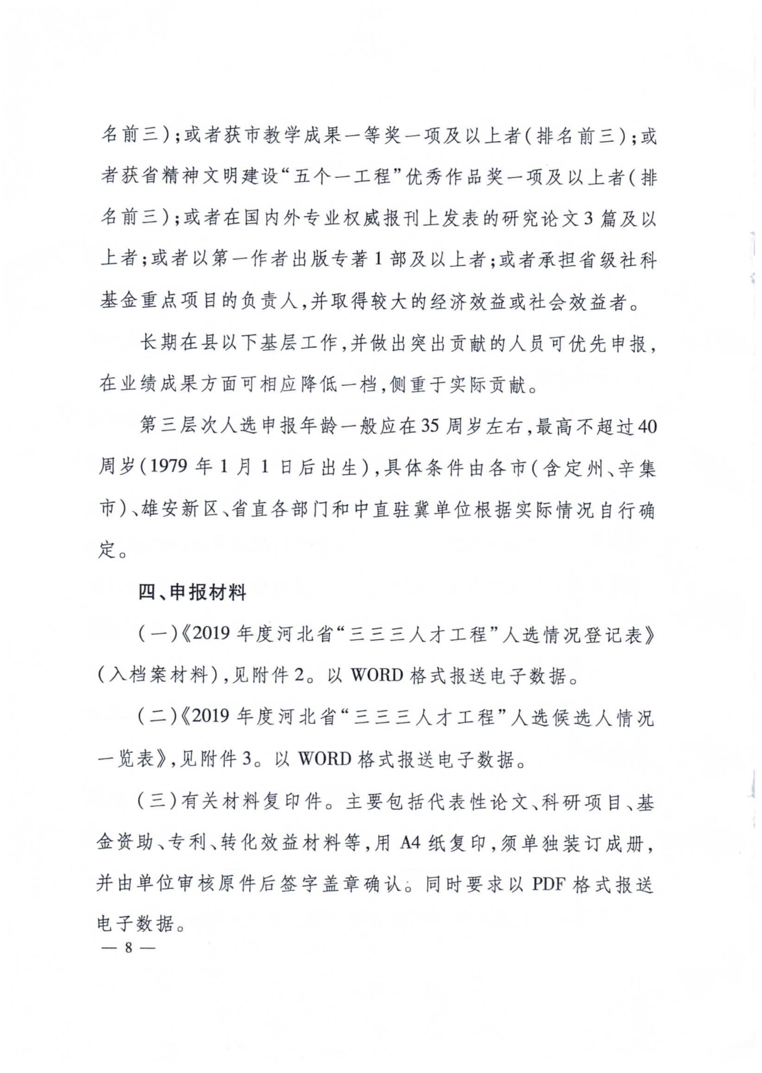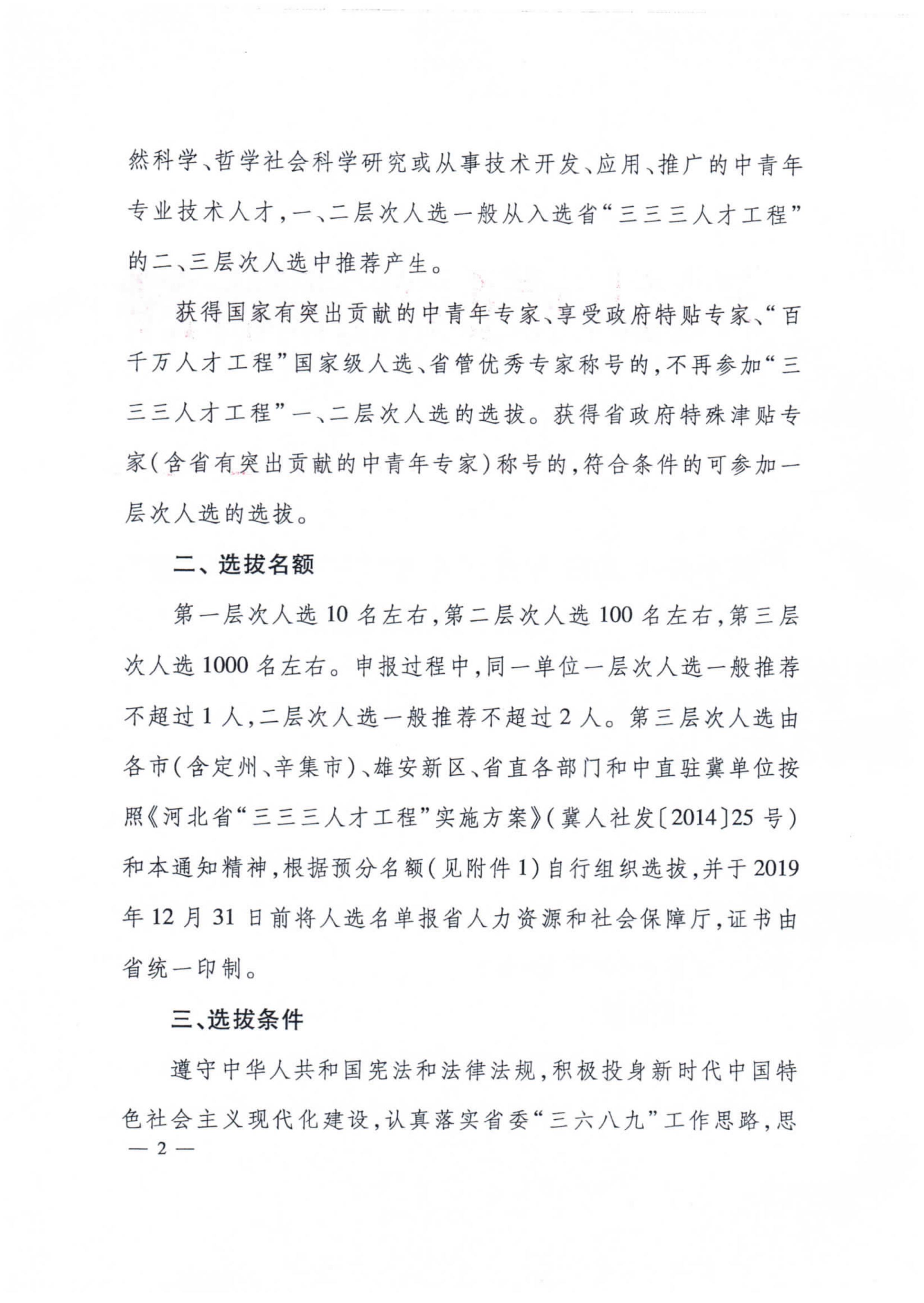 關于開展2019年度河北省“三三三人才工程”人選選拔工作的通知